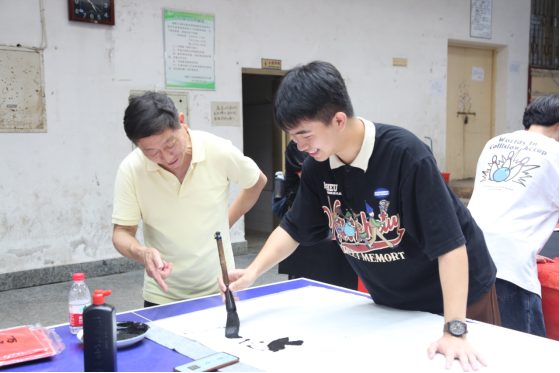 退休书画协会教师给楚艺书法协会学生现场书法指导