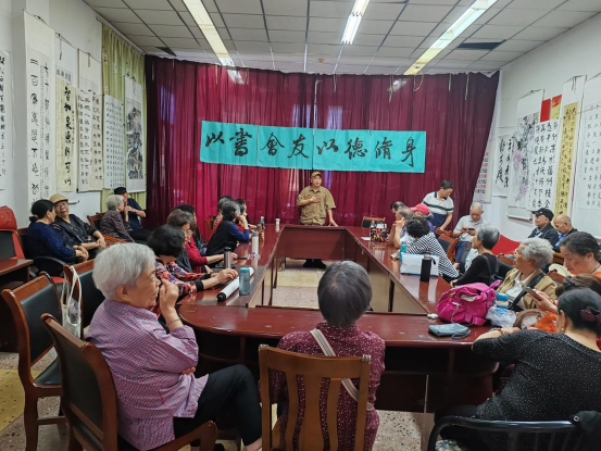 在活动现场,大家切磋技艺,挥笔创作,互相鉴赏和交流书画经验。会长杨东升结合现场作品,仔细讲解写意国画如何运笔用色。活动室里洋溢着笔墨的清香和艺术的气息,充分展现了老同志们积极向上的精神风貌。