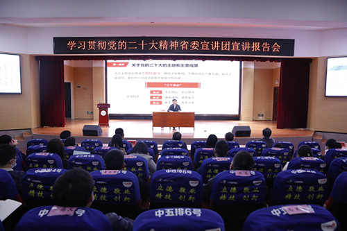 刘建湘表示,本次宣讲报告是一次紧扣主题、体现内涵、把握精神的宣讲,是一次启发思维、理清思路、鼓舞干劲的宣讲,是一次理论性强、针对性强、指导性强的宣讲,对于全校师生更加深刻领会党的二十大精神、更加深刻贯彻落实二十大精神,具有十分重要的指导意义。学习宣传贯彻党的二十大精神,是当前和今后一个时期的首要政治任务,全校师生要坚持学深悟透,着力把准精神实质,坚持落地落实,着力推动学习贯彻系列活动取得成效,坚持见行见效,着力推动学校高质量发展,培育更多高素质技术技能人才,在全面落实“三高四新”战略定位和使命任务、在建设社会主义现代化新湖南的伟大实践中做出新的更大的工院贡献。