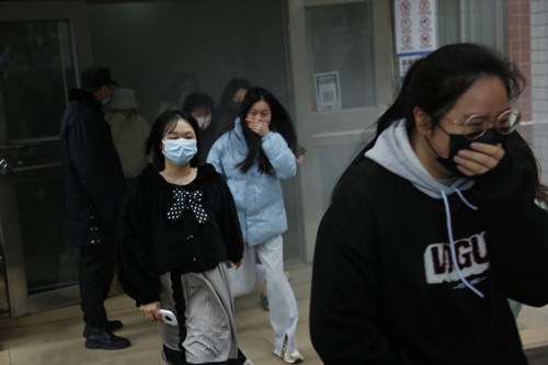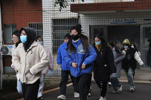 随着消防警报拉响,滚滚浓烟充斥着九栋学生公寓楼的走廊,工作人员快速达到预定点位,组织和协助同学们有序撤离公寓楼。同学们第一时间打开寝室门,俯身并掩住口鼻,沿着安全通道路线迅速撤离。整个疏散演练过程中,同学们快而不乱,井然有序,五分钟内,九栋学生公寓楼的全体学生撤离到学校操场安全地带。
