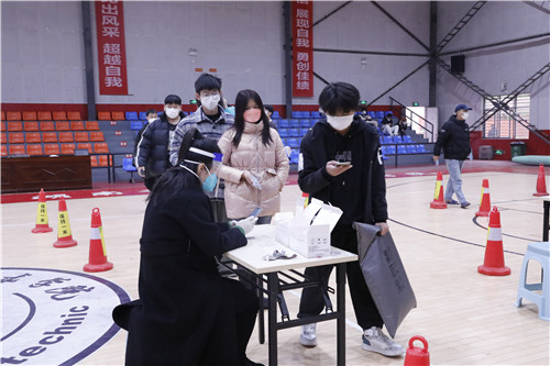 在11名教师党员的协助下,现场完成了6190名学生的核酸检测。“本来我们还在愁要去哪里做核酸,现在可在校内进行集中核酸检测,大大方便了我们,减少了外出做核酸检测的风险。”计网22-3班谭思城为学校此暖心举动点赞。