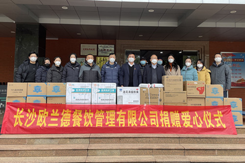 本网讯 12月30日,长沙欧兰德餐饮管理有限公司向我校捐赠布洛芬胶囊、连花清瘟胶囊、小柴胡颗粒、N95口罩、水银针体温计、消毒酒精等一批紧缺防疫物资,支援疫情防控工作、助力抗击疫情。学校副校长、工会主席侯新华接受物资捐赠,并向爱心企业表示衷心感谢。