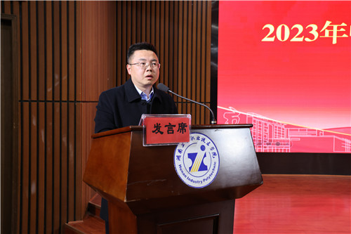 党委书记刘建湘分析了职业教育面临的新形势,指出在新的形势下,学校发展面临的机遇和挑战。接着,他指出今年学校工作的总体要求是:以习近平新时代中国特色社会主义思想为指导,全面贯彻党的二十大精神,坚持立德树人根本任务,以一流党建为引领,以“双高”建设验收和职教本科创建为重点,聚焦改革创新和高质量发展,全力落实“五个一批”,着力提升人才培养质量,在服务“三高四新”战略定位和使命任务中展现新作为,奋力谱写学校发展新篇章。
