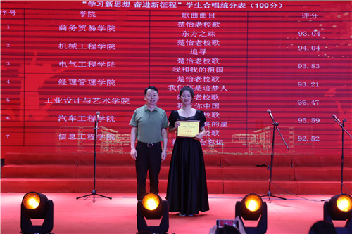 “自5月师生合唱比赛启动以来,全校上万名学生以班级为单位学唱楚怡老校歌,参与了二级学院初赛的选拔,最终7支学生参赛队伍脱颖进入决赛。”据团委副书记刘畅介绍,学校以此次合唱比赛为契机,采取多种方式组织师生学唱楚怡老校歌,将楚怡老校歌传唱纳入分工会活动、主题团日等活动之中,做到人人会唱、人人乐唱。