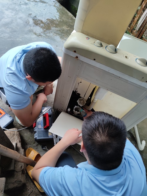除了义务维修,小分队队员们还协同村部管理人员到村落各处开始检查供电设施,排查安全隐患。排查过程中,队员们还耐心地向各户村民讲解家电使用和保养方法,宣传安全用电知识。