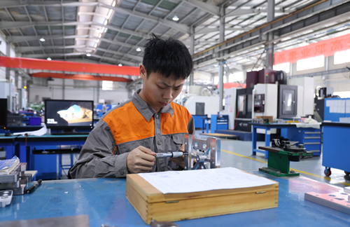 连续做10个正方体,面对面平行度误差不超过0.02毫米、尺寸误差不超过0.03毫米,有1个不合格就得从头开始——这是欧阳陵江给入选学校技能竞赛代表队的新成员们布置的“常规作业”。