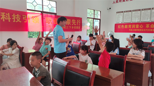 汽车工程学院本次“三下乡”社会实践活动以“智驭乡野梦启未来”为主题,聚焦服务农村儿童主体,开展了与你“童”行、与你“童”访、与你“童”频、与你“童”伴、与你“童”演五大系列活动,包括进行职业教育启蒙、走访基层了解农村生活基本情况、开展防溺水知识宣讲等8项子活动。未来,学院将继续聚焦农村儿童、乡村教育,不断优化教育帮扶方式,让农村儿童能够共享优质教育资源。