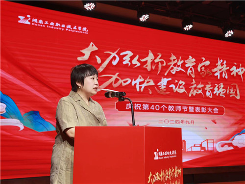 吴亮红表示,希望广大教师立德修身,做师德高尚的榜样之师;勤学笃行,做潜心钻研的博学之师;担当有为,做勇攀高峰的创新之师,以教育家精神为引领,着力培养担当民族复兴大任的时代新人,为建设教育强国、教育强省贡献工院力量。