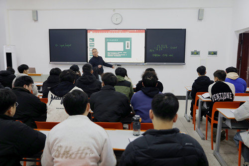在《习近平新时代中国特色社会主义思想概论》课上,马克思主义学院姜广举老师以DeepSeek为全球AI技术的发展注入新活力等当前社会热点引入,从世界百年未有之大变局加速演进、中华民族伟大复兴进入关键时期、中国式现代化全面推进拓展等方面,与同学们探讨了习近平新时代中国特色社会主义思想形成的时代背景。