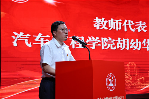 “作为老师,我们不会忘记课堂上你们专注的目光,不会忘记技能赛场上你们全力以赴的身影,更不会忘记你们捧回奖杯时灿烂的笑容。”学校汽车工程学院教师胡幼华上台发言,他回顾了同学们成长的历程,勉励同学们以“大国工匠”为榜样,在技术浪潮中持续充电,以“拧好每颗螺丝”的专注雕琢技能,实现梦想。