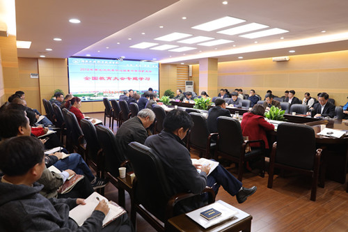 本网讯 10月24日下午,我校在办公楼二会议室举行第七次党委理论学习中心组集中学习扩大会,专题学习贯彻落实全国教育大会精神,重点学习贯彻落实习近平总书记在全国教育大会上重要讲话精神。党委书记刘建湘主持会议,党委中心组成员及中层干部参加会议。