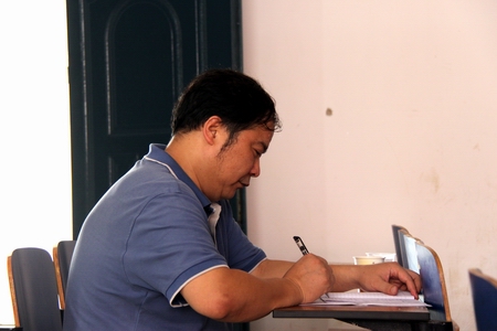 院长刘建湘检查课堂纪律,现场记录教学运行情况