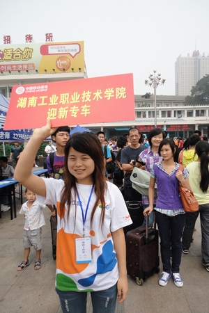 “湖南工业职院欢迎您”——准备就绪的志愿者们