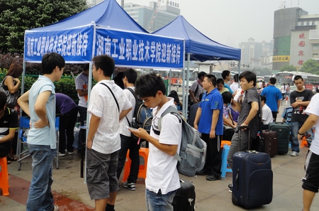 9月7日上午,我院迎新工作正式展开。在迎新工作的各个现场,随处可见迎新志愿者的身影。为确保新生顺利报到,学生处和院团委在火车站、火车南站、汽车西站、汽车东站、汽车南站安排了5个迎新工作点,并于暑假期间经过层层选拔招募了800余名迎新志愿者。