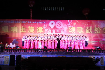 省机械行管办主任陈丹萍发表了热情洋溢的致辞。比赛邀请到省音协、艺校、师大音乐系等教授专家担任评委。共有15支参赛队参加演唱比赛,深情祝福我们伟大的党90华诞。