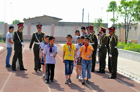 联丰小学的学生们看到我院的国旗礼仪手们都感到很新鲜和好奇,“很喜欢看到大哥哥们穿着军装,非常帅气,将来我也要像他们一样。”一位小同学很认真地说道。该校的领导与老师们对礼仪队的到来也表示了热烈欢迎。