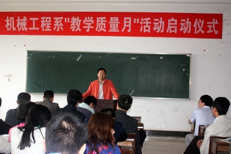 为了进一步提高教师的教学水平和辅导员的学生管理水平,调动教与学双方的积极性和创造性,创建优良的教风、学风,全面提升教学质量,机械工程系开展了以“积极构建高效课堂,促进教与学和谐发展,全面提升教学质量”为主题的“教学质量月”系列活动,活动时间为第十一周至十四周。
