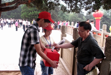 活动得到了潇湘晨报的大力支持,晨报为活动提供了近千份报刊和杂志,作为回馈给每个献爱心市民的小礼物。志愿者们分成七个小组在烈士公园的各地沿途义卖,同时还在西门和北门两个地方各设了一个募捐点。面对形形色色的来往路人,志愿者们拿出十足的耐心,不厌其烦的向每一位宣传和解说。“打扰一下您,我们是湖南工业职院机械工程系的志愿者,我们正在为帮助长沙市孤残儿童义卖,请您先一份爱心吧……”,“送您一份报纸做为您爱的回馈”。对每一个人捐款的人,志愿者都会深鞠一躬表示感谢和尊重。