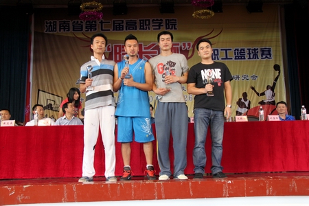 随后,在省教育厅机关队和省高职院校院长联队进行了一场友好的表演赛之后,湖南省第七届高职院校“院长杯”篮球赛圆满闭幕,出席闭幕式的嘉宾为获奖球队进行了颁奖。