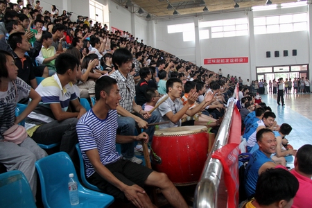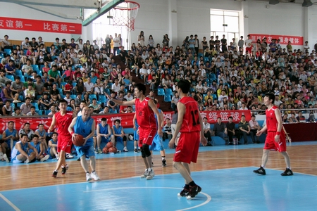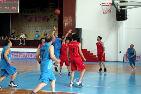 第三节比赛开始,我方球员毫不松懈,奋力拼抢。刘建湘院长与队友们巧妙配合,连续几次投篮命中率百分百,为我方拿下14分,第三节比赛以89比46遥遥领先。为真切体现“院长杯”篮球赛的精髓,第四节比赛继续由院长刘建湘带队,我方派出党委副书记龙承海、副院长王柏林、副院长刘继平及工会主席张志勇上阵,成为本届比赛唯一一支全由院级领导上场的球队。顿时,体育馆内沸腾起来,战鼓雷响,球迷们和啦啦队们的欢呼声、掌声久久不能平息。这是本场比赛的最高潮,同时也是本场比赛气氛最轻松的一节,之前中规中矩报备比赛得分情况的赛事解说员在此刻变得幽默诙谐,馆内欢呼声、笑声、掌声不断,这场冠军争夺赛成为了我方院级领导展现篮球技巧的星光秀场。最终,我方以109比88分赢得整场比赛,夺得本届高职院校“院长杯”篮球赛冠军。