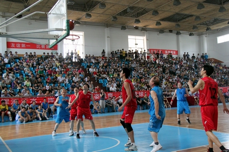 下午两点半,冠军争夺赛正式吹响号角,这场王者之争吸引了众多球迷前来观战,体育馆内座无虚席。双方都是从小组赛第一开始一路领先走到总决赛,实力不可小觑,赛场上笼罩着一片大战前的紧张气氛。我院由刘建湘带领配合默契的刘学、袁野、刘星欣、宛英杰四名球员上场迎战。从第一节比赛开始,我方球员便以强劲的气势压制住对方球员,打出5比0的小高潮之后继续连连得分。第一节比赛以27比8大比分领先,第二节又以52比31的好成绩继续领先,体育馆内氛围逐渐变得轻松起来,似乎预示着比赛结果已没有悬念。