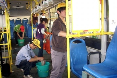 四月的南郊,阳光温煦明媚,草木含情迎客。为践行雷锋精神、感受助人之乐,4月24日下午,电气工程系青年志愿者协会一行17人来到南郊公园公交车站开展了以“弘扬雷锋精神,共创和谐公交”为主题的车厢清整活动。
