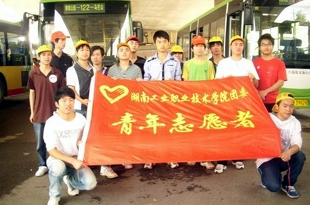 活动最后,志愿者们将一张张“奉献、友爱、互助、进步青年志愿者标志”贴在公交车上,寄托着他们的祝福。