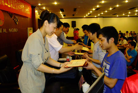 5月7日上午,2011年湖南省职业院校专业技能竞赛我院赛点闭幕式在新东方酒店顺利举行。省派巡视员赖阳春、省派联络员吴甚其、我院副院长及赛点负责人董建国、裁判员代表崔建波等领导、专家、裁判员以及参赛选手出席了闭幕式。闭幕式由我院教务处处长周劲松主持。
