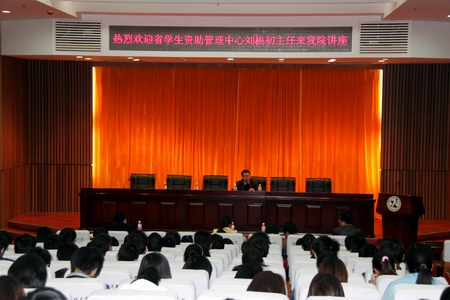 3月30日下午,我院邀请湖南省教育厅学生资助管理中心刘桃初主任在多功能报告厅举行了一场题为“新资助政策简介与学生感恩教育、诚信教育”的讲座。学生处处长侯新华主持讲座。