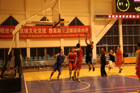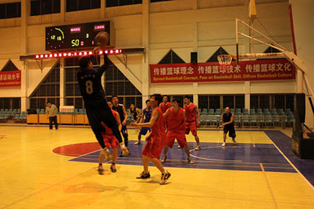 会后,双方进行了篮球友谊赛,我院院长刘建湘、党委副书记龙承海、副院长王柏林、副院长刘继平等院领导轮番上场率领球队。上半场双方你争我夺、不相上下,比分交替领先,下半场我院职工队卯足干劲,逐渐拉开比分差距。最终,我院职工队以97比86获胜。