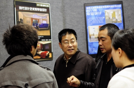 4月13日上午,现代设计艺术系2011届毕业作品展开幕式在图书馆前坪举行。学院党委副书记龙承海宣布2011届现代设计艺术系毕业作品展正式开幕,兄弟系部负责人应邀参加了开幕式,仪式由现代设计艺术系副主任马昆林主持。