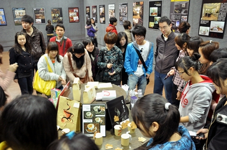 四月,春暖花开,洋溢着花香和希望。现代设计艺术系2011届毕业生迎来了他们丰收的时节,其毕业作品展在图书馆展厅顺利举行。