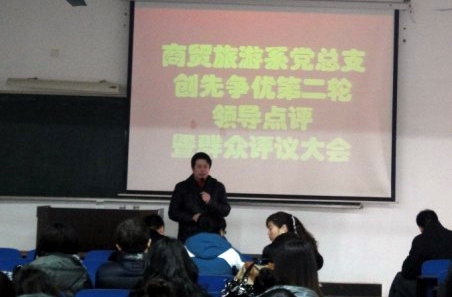 3月15日下午,商贸旅游系党总支召开了创先争优第二轮领导点评暨群众评议大会。学院党委副书记龙承海,商贸旅游系党总支全体党员及群众参加了会议,会议由商贸旅游系党总支副书记龙凌主持。
