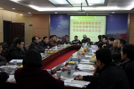 3月22日下午,湖南省高职教育体育工作研究会常务理事会成立大会在我院办公楼二会议室举行。省高等职业教育分会会长、原湖南省教育厅副巡视员赖阳春,副会长、省教科院职成教育研究所副所长王江青,我院党委书记廖洪元、院长刘建湘等院领导出席会议。省高职教育体育工作研究会常务理事会成员20余人参加会议。