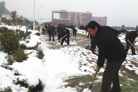 学院副院长钟晓林带领后勤职工清扫积雪