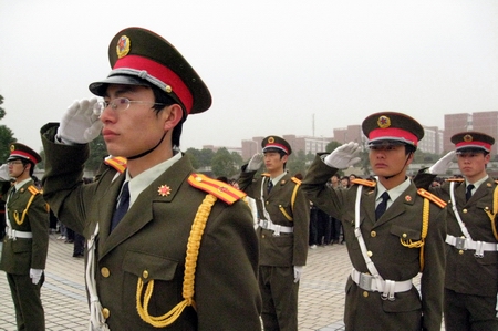 在一阵热烈的掌声中,2010—2011学年度第二学期开学升旗仪式圆满落幕,同学们依序退场。