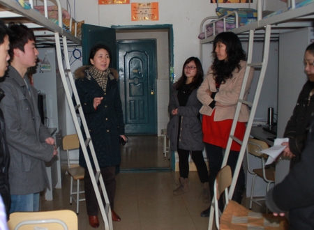学院调研员、汽车工程学院党总支书记刘琼带领学生干事、辅导员走访学生寝室