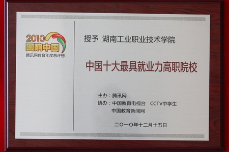 12月15日,由腾讯网主办,中国教育电视台、CCTV中学生频道、中国教育yabocom(中国)官方网站网等媒体协办的2010“回响中国”教育年度盛典在北京香格里拉酒店隆重举行。全国教育界专家学者、媒体人以及知名教育机构领军人物400余人汇聚一堂,共同回顾中国教育发展历程,见证教育改革成果,树立中国教育榜样力量。 我院在2010教育年度总评榜颁奖典礼中荣获“中国十大最具就业力高职院校”称号。