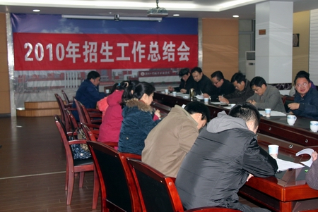 1月5日下午,我院2010年招生工作总结会在办公楼二会议室召开。院长刘建湘、党委副书记周立华、全院各系及相关部门负责人、就业干事参加了会议,会议由周立华副书记主持。