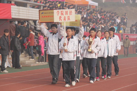 11月27日上午,阳光穿透冬日清晨的浓雾,随着欢快音乐声的响起,yabocom(中国)官方网站迎来了第九届田径运动会。学院领导廖洪元、刘建湘、龙承海、王柏林、李玲、刘继平、钟晓林、董建国、刘琼以及各系、部门负责人等出席了开幕式。开幕式由学院党委副书记周立华主持。