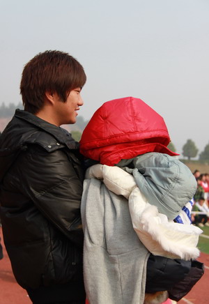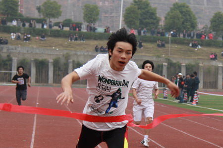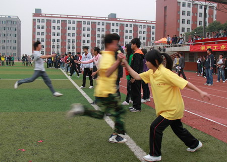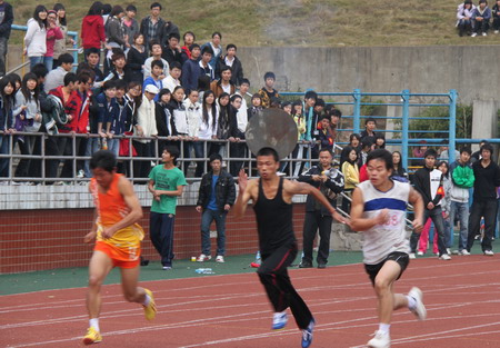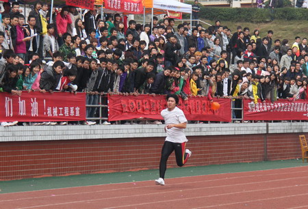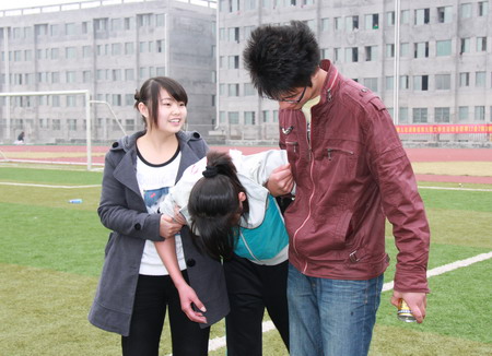 做后勤服务的同学赶来搀扶体力不支的参赛选手