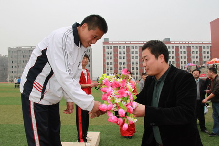 学院体育艺术部部长周文为获奖选手颁奖后合影