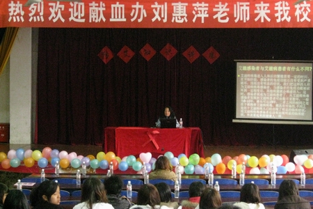 长沙市血液中心献血办主任为同学们作防艾知识讲座