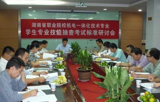9月4日,我院主持召开了“湖南省职业院校机电一体化技术专业学生专业技能抽查考试标准研讨会”。副院长董建国教授、项目主持人周劲松副教授、电气工程系机电一体化技术专业教师参加研讨会。会议还邀请了中联重科、远大空调、长丰汽车、长沙起重机厂等企业专家,以及湖南生物机电职业技术学院、长沙航空职业技术学院、娄底职业技术学院和湖南机电职业技术学院等高职院校机电一体化技术专业的专任教师参加。