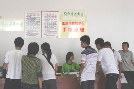 据悉,学院还专门安排了新生报到的“绿色通道”。 负责办理新生“绿色通道”的老师告诉记者,学院采取分期缴纳学费,办理助学贷款以及助学金和奖学金等形式向贫困学生提供帮助,以保障任何一个学生都不因贫困而失学,实现大学生在我院就读的零失学。