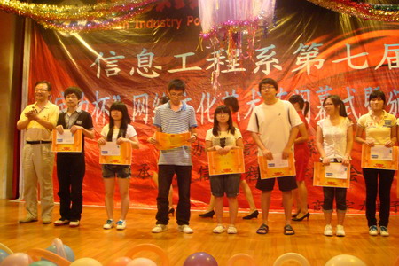 为了提供一个展示我院校园文化特色和学生个性特长的平台,丰富大学生校园文化生活。6月28日晚,由信息工程系主办,信息工程系团学联合会承办,宇力电子科技有限公司协办的信息工程系第七届“宇力杯”网络文化艺术节闭幕式暨颁奖晚会在大学生活动中心举行。学院副院长王柏林、宇力科技有限公司总经理吴照、学生处及信息工程系等相关负责人参加了闭幕式。