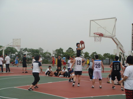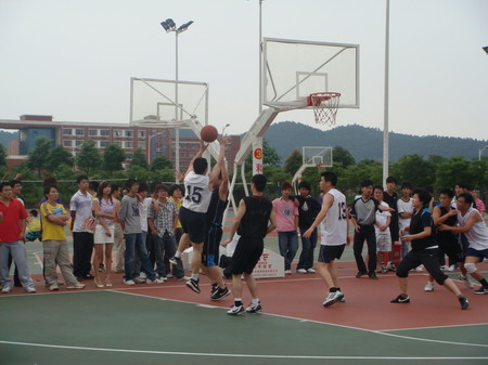 总决赛在此起彼伏的呐喊助威声中激烈开战。赛场上,教职工们一个个英姿飒爽,斗志昂扬的活跃在篮球场上。参赛球员们投三分球的潇洒,漂亮的扣篮,顽强的拼搏精神赢得在场的观众阵阵欢呼声和掌声。此次参赛选手中有学院领导,并且还有两位年龄超过50岁的女教师踊跃参赛。充分展现了我院师生热爱体育,积极向上的体育风尚以及和谐同乐的体育精神。
