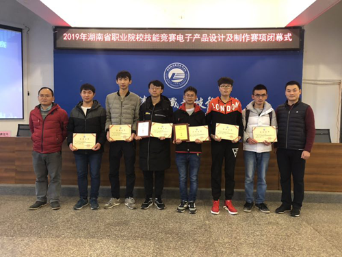 本网讯 12月23日,湖南省职业院校技能竞赛“电子产品设计及制作赛项”在湖南铁道职业技术学院落下帷幕。我校派出的两支参赛队伍,历经4小时鏖战收获颇丰:由李明飞、陈义两位老师指导的一队(刘承京、李必超、柏兴杰为参赛队员)荣获此次技能大赛的团体一等奖;由李力、邹序武两位老师指导的二队(孙延京、曹维胜、李孝淞为参赛队员)荣获此项赛事的团体三等奖。