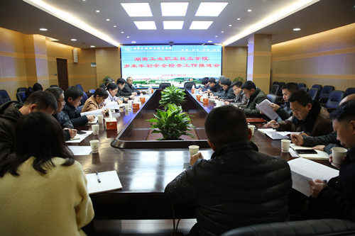 本网讯 1月5日上午, 我校在办公楼召开岁末年初安全检查工作推进会。学校副校长邓建国、邱丽芳,党政办、保卫处、后勤处、学生处、团委、教务处、宣传统战部、实训中心、信息中心等部门负责人,各二级学院党政主要负责人参加了会议。会议由邓建国主持。