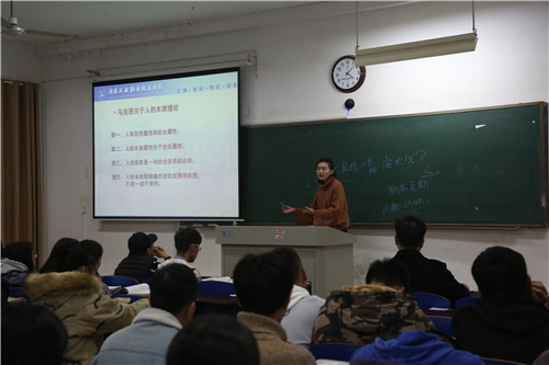 课堂上,袁老师综合运用多种教学手段,为学生们解答了“人是什么”、“人的本质是什么”、“人生目的、人生态度、人生价值”等知识点。精心准备的课件、案例、视频通过袁老师的娓娓道来,引发了学生们的共鸣与思考,课堂氛围热烈,受到学生们的欢迎。